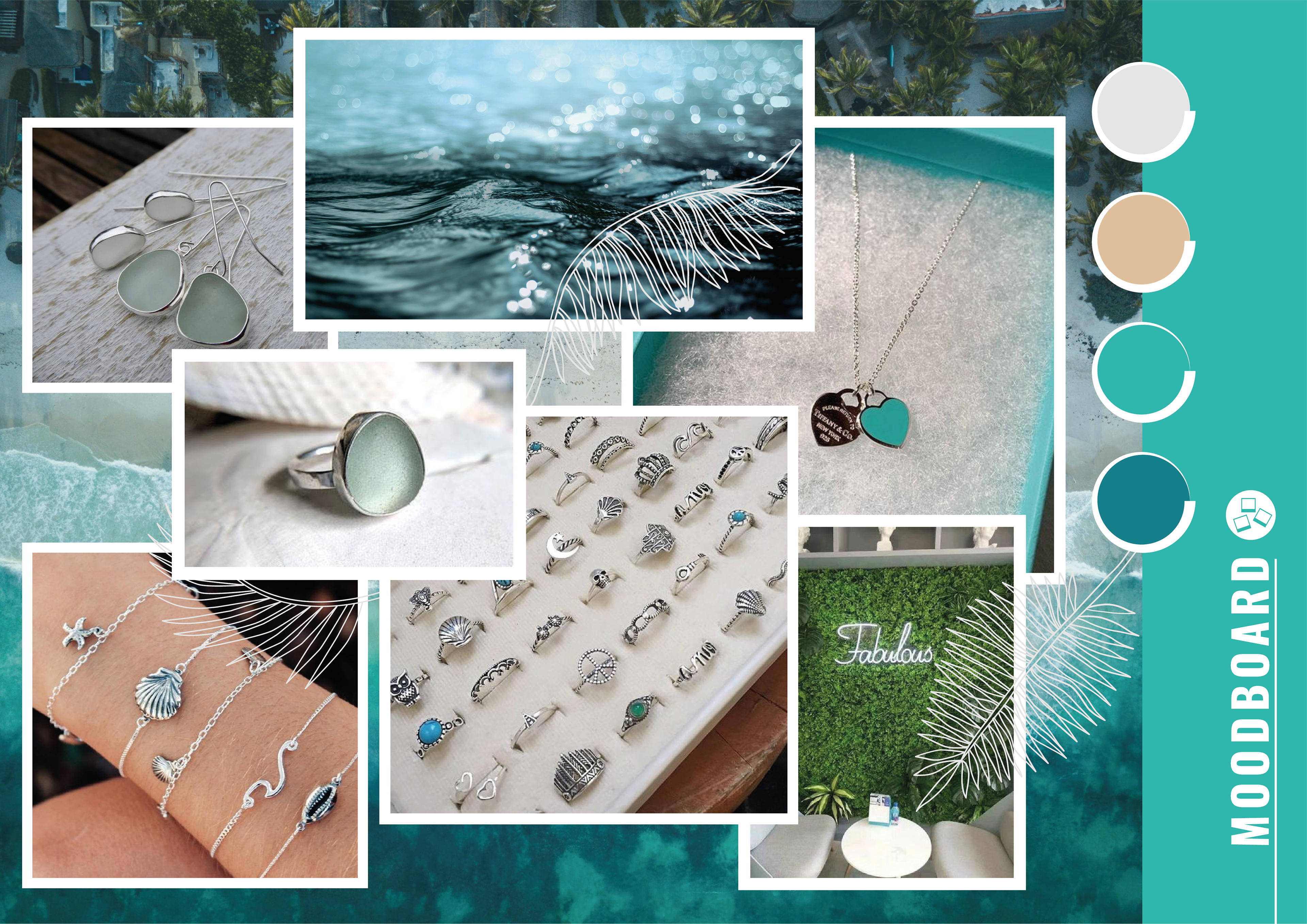 O desenho idealizado para esta identidade visual busca unir de uma forma não convencional os dois elementos presentes no próprio nome da marca, o mar e as joias. O processo criativo foi composto pela desconstrução e composição desses dois elementos.
